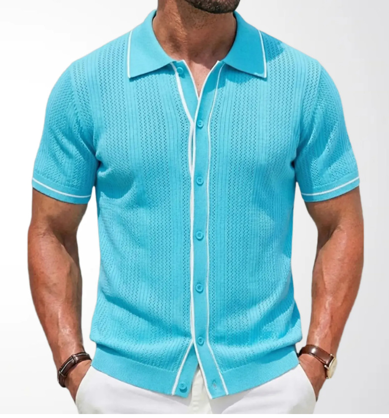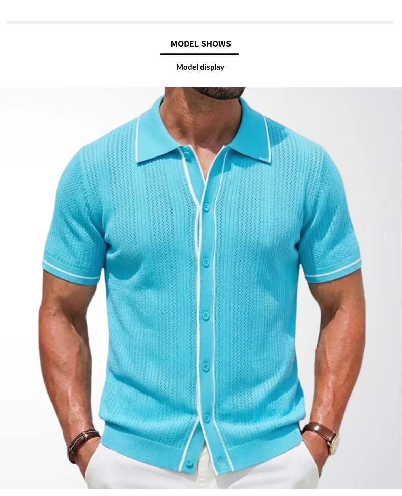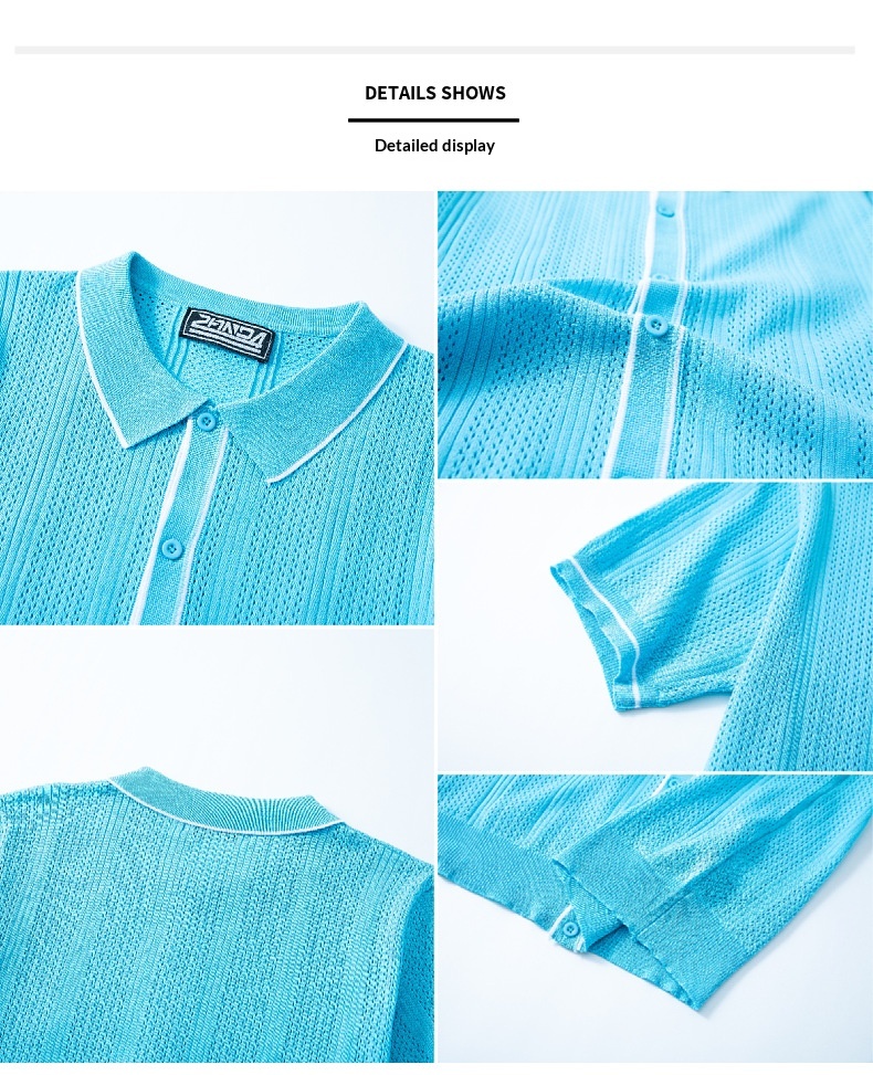 Men's Short-Sleeve Knit Top Cardigan Polo Shirt