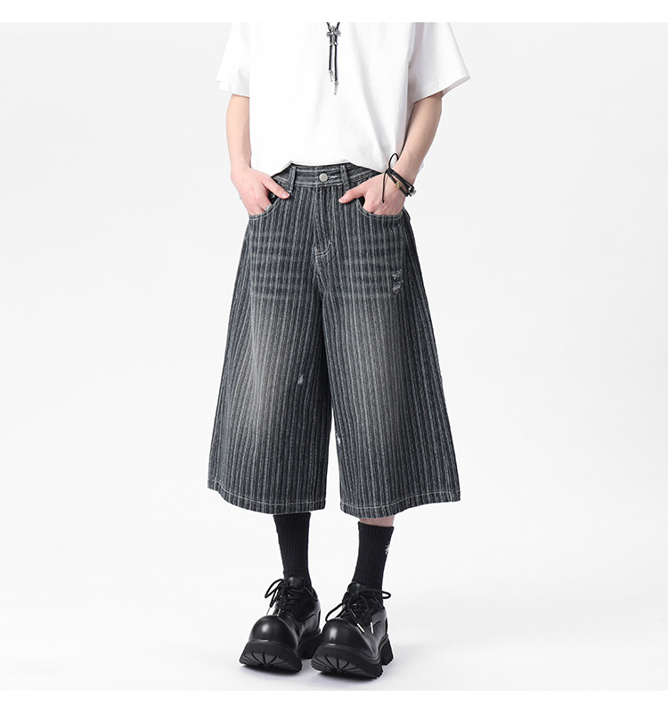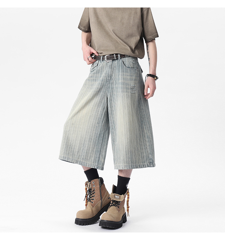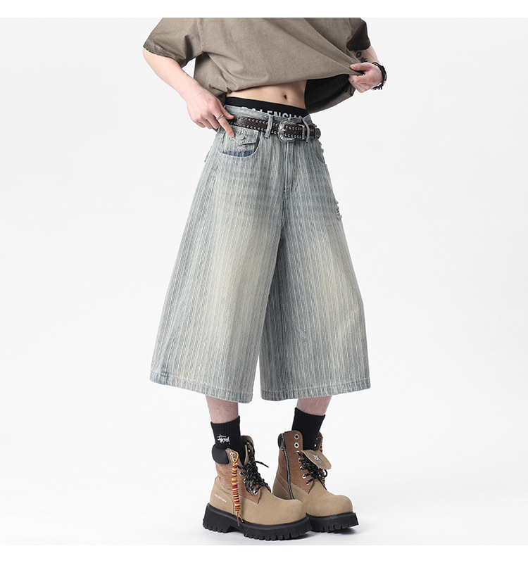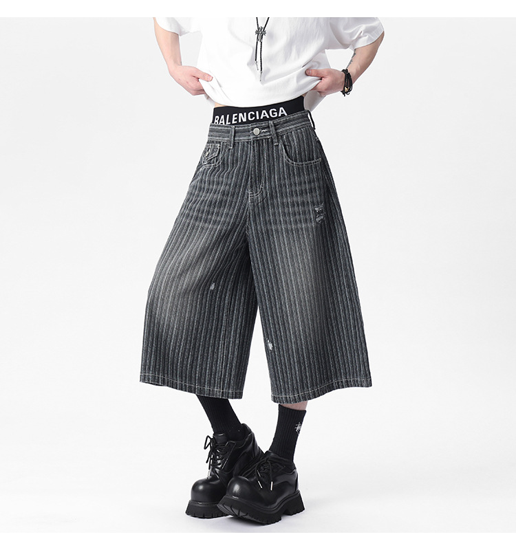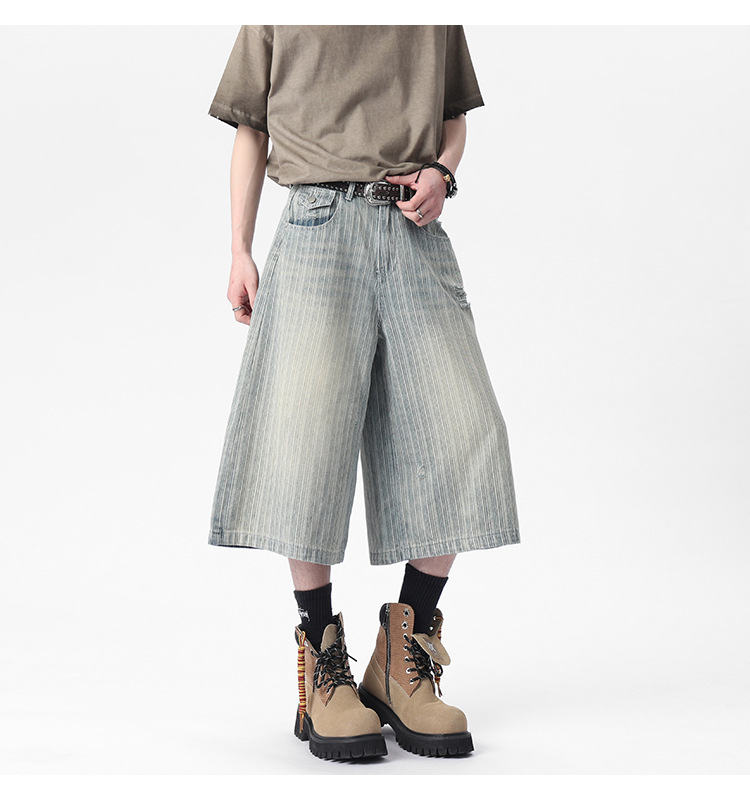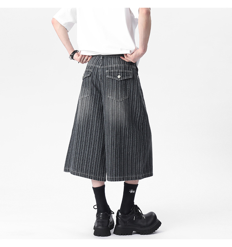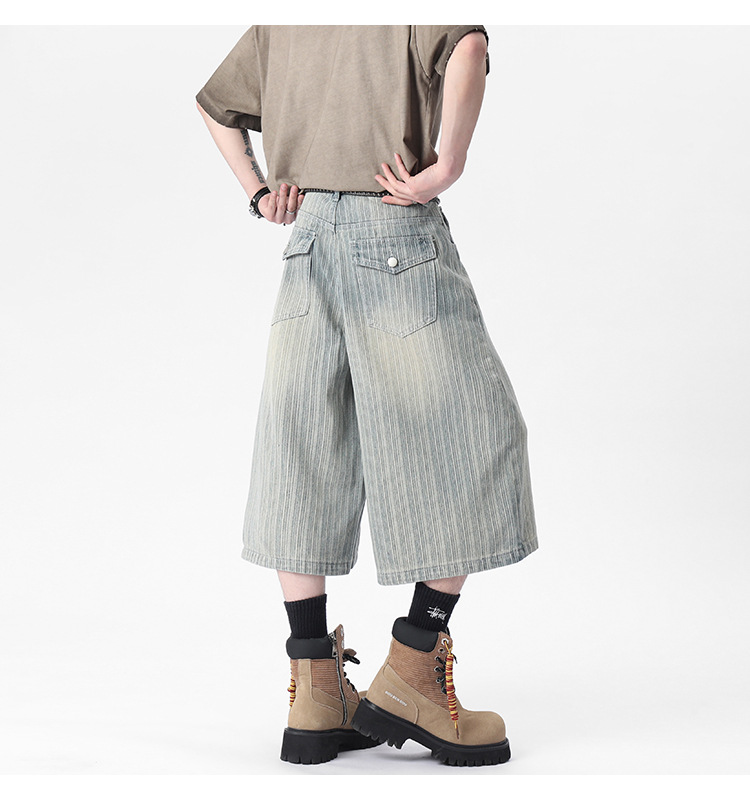 Workwear Striped Capri Denim Shorts