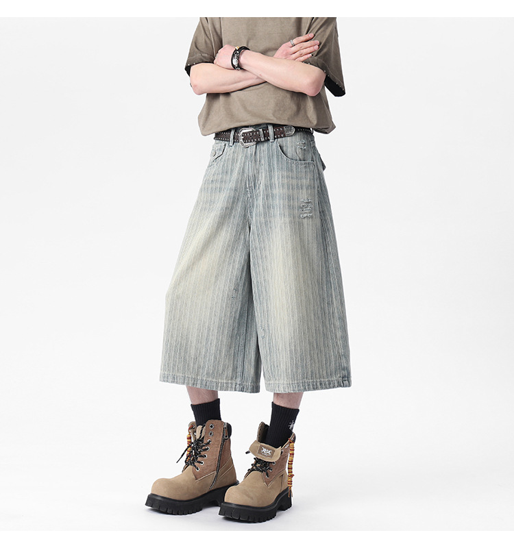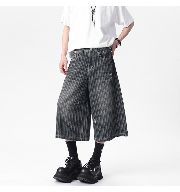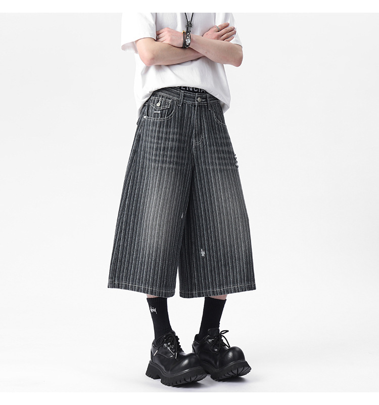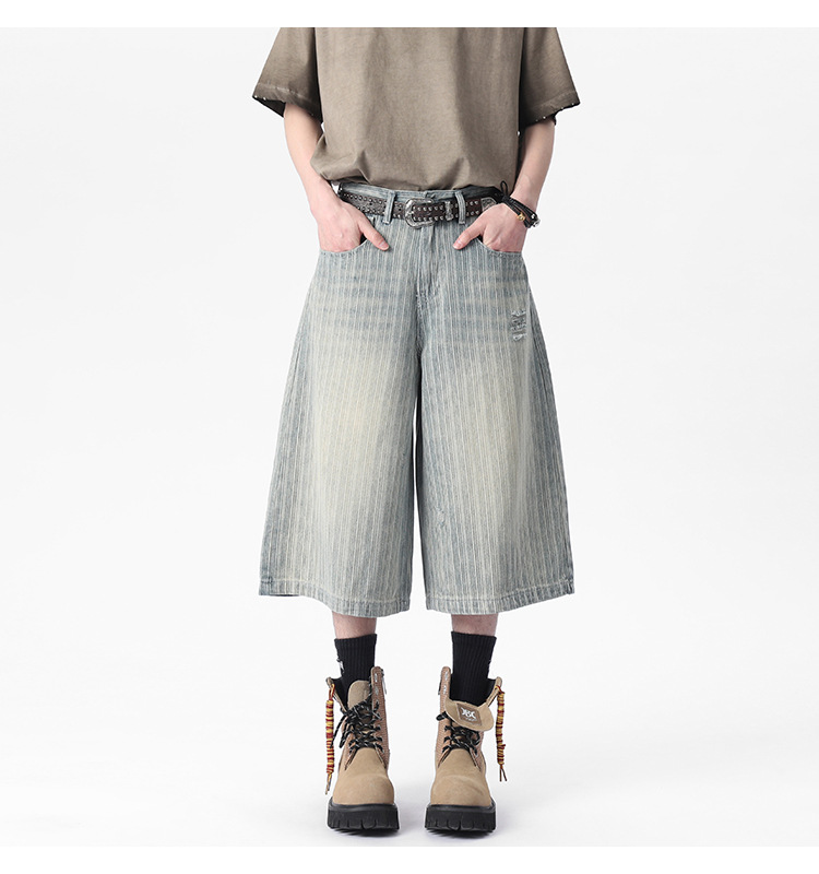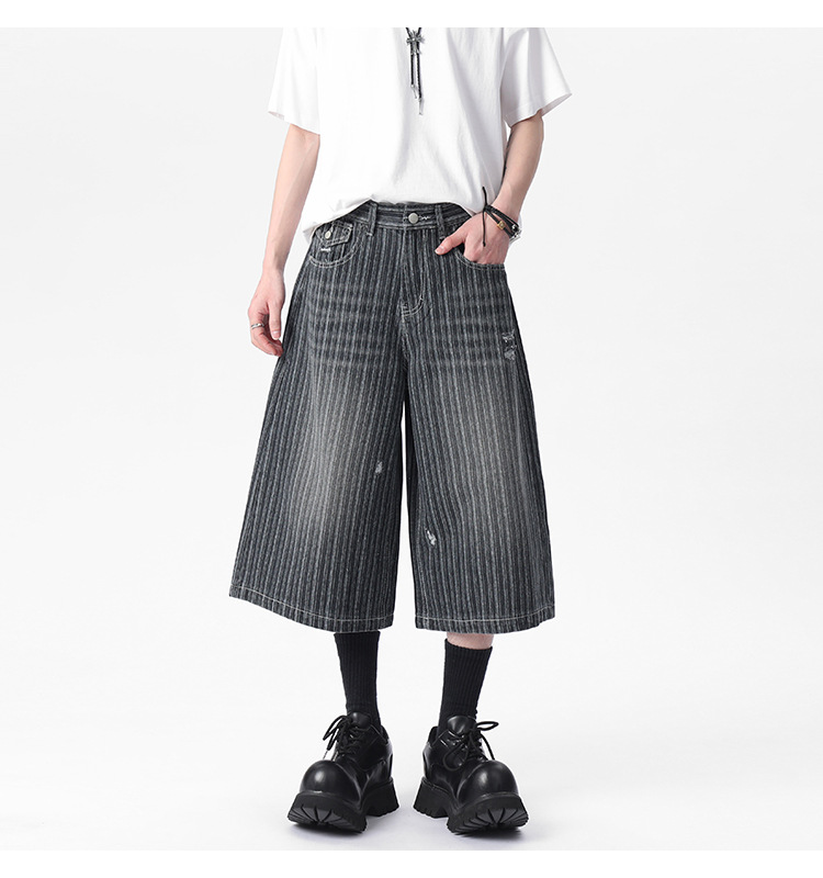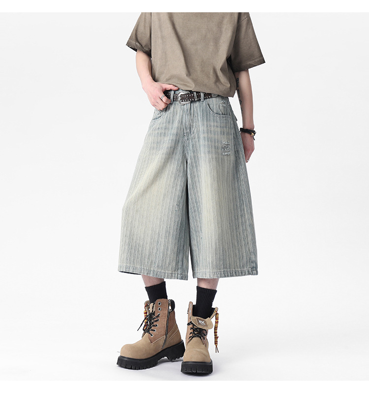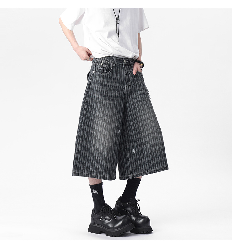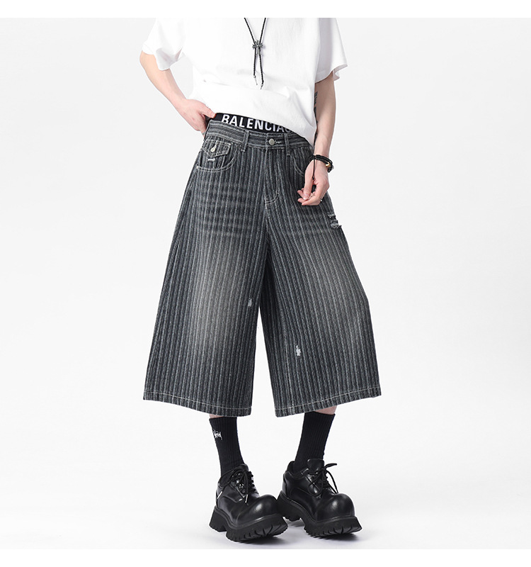 Workwear Striped Capri Denim Shorts